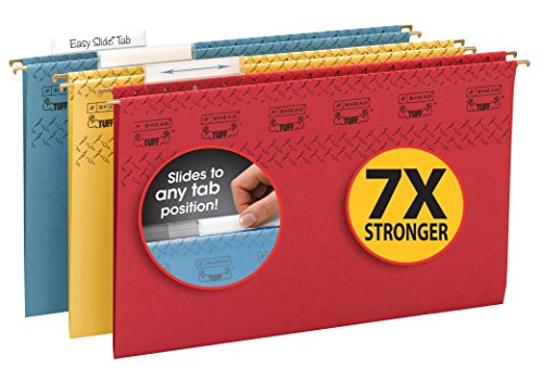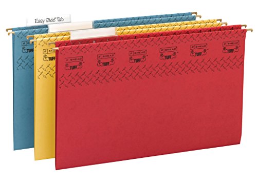 -. Title : Smead TUFF Hanging File Folder with Easy Slide Tab, 1/3-Cut Adjustable Plastic Tabs, Legal Size, 15 per Box