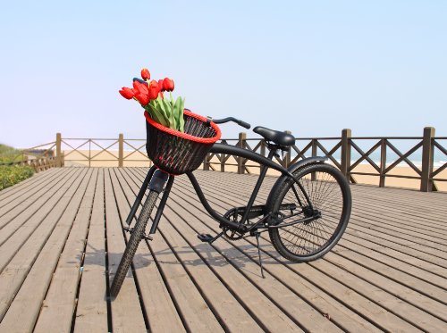 - Title : Colorbasket Adult Front Handlebar Bike Basket, Black with Red Trim