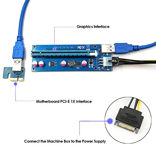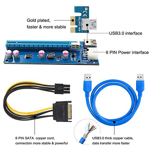 Package Included: 1 * PCI-E 16X Adapter 1 * PCI-E 1X Riser Board 1 * USB3.0 Cable 1 * 15Pin-6Pin Power Cable 0