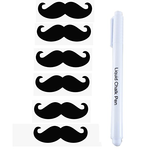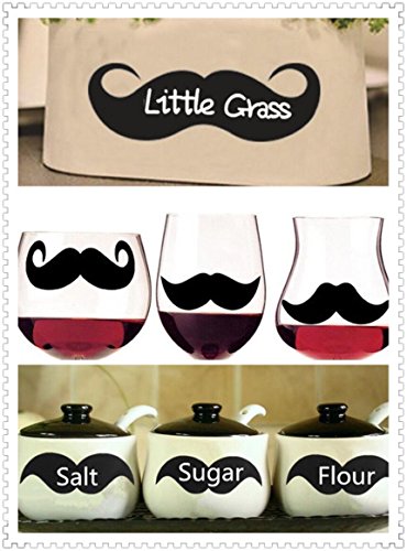 72 Mustache Labels for Food Storage, Pantry, Spice Jars & Freezer Reusable adhesive Stickers for Chalk Markers - 3.1x1.5 inch