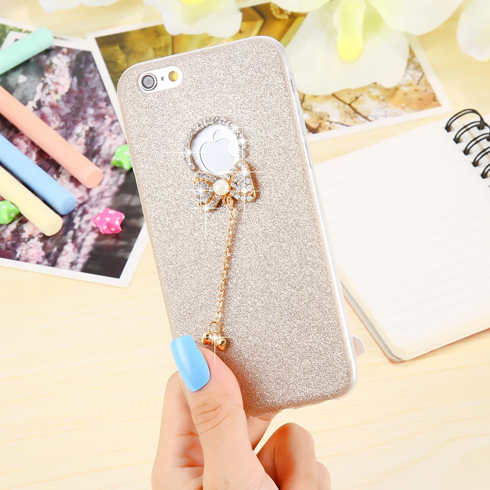 Features:Bling Powder + Soft TPU + Rhinestone Pendant