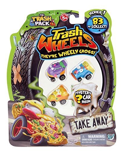 -. Feature : Trash Pack Wheels TAKE AWAY Blister / Rubbish just got revved-up with the new Trash Pack Trash Wheels collection! A brand new Trash Packs range, have a 'wheely' gross time racing these Trash Wheels vehicles around the garbage yard! There are over 83 cars to collect in the form of 6 gruesome teams: the Muck Trucks, Litter Buggies, Skid Marks, Army Junk, Take Aways and Rust Busters! One supplied, colour and style may vary. Suitable for ages 5 and above. / Safety Information: Warning. Not suitable for Children under 3 years.