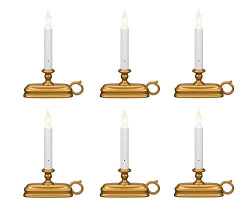 Studio : Xodus Innovations Publisher : Xodus Innovations Binding : Kitchen Product Description Pack of 6: FPC1525B battery operated LED window candles with sensor. Features a gold base and a soft white LED light. Candles automatically turn on at dusk and off at dawn. Operates on 2 "C" batteries (not included). Batteries will last 45 days when lit for 12 hours per day. Candle features three settings; off, on (flickering), on (steady burning). Measures: 9"H x 6"W x 1.75"D. 0