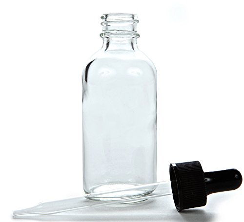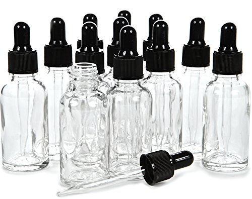 - 12 - 2 oz, Clear Glass Bottles, with Glass Droppers, and Black Caps