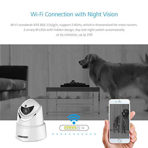 Pan/Tilt and 1080P HD Video:2.0-Megapixel 1920*1080P resolution at 30fps,Glass lens (f=3.6mm) with 345° horizontal Pan and 90° vertical Tilt,Advanced night vision with 2pcs array IR-Led lights beads extend the viewing distance to 26ft in pitch dark with no light pollution, so your baby or pet will not be disturbed by LED glare