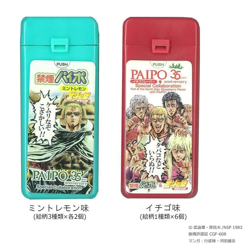 禁煙パイポ35周年を記念し、北斗の拳「イチゴ味」とコラボレーションした限定モデルです。禁煙パイポは煙が出ないので、場所を気にせず使用できる便利な禁煙グッズです。本品は従来品より吸い応えに拘り、禁煙を志す方々により満足していただくことをコンセプトとしています。 |