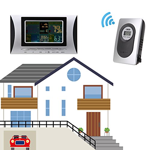 -. Feature : Measure indoor and outdoor temperature and humidity / Wireless transmission makes it possible for outdoor temperature to display on the indoor receiver / Remote transmission of outdoor temperature by 433MHz / Multiple functions: alarm, snooze, calendar, weather forecast and moon phase display / The LCD screen with color display, enjoyable to read; With 2 hanging holes, it is convenient to hang on the wall