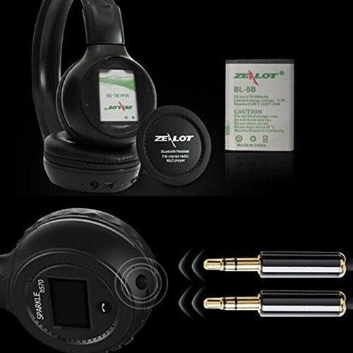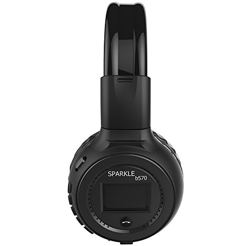 Desxz B570 LCD Display Screen Foldable 3.5MM wired Wireless Stereo Bluetooth Headphone Handsfree with Mic FM Radio TF Card Slot (Black)