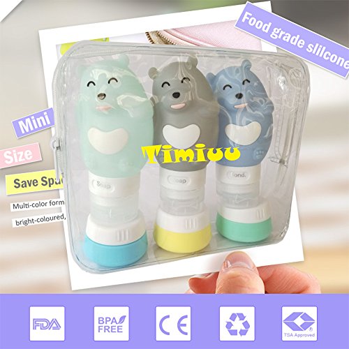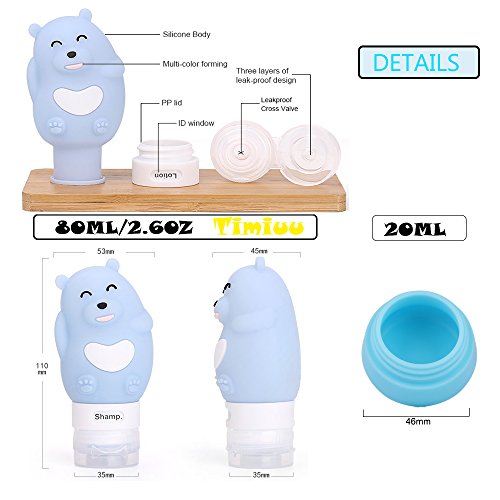 Leak-proof Travel Bottles Set, Timiuu 6-Pack 2.6 oz TSA Approved Silicone Cute Bear Travel Bottles, 20ml Cosmetic Containers With Sealed Lids for Shampoo,...