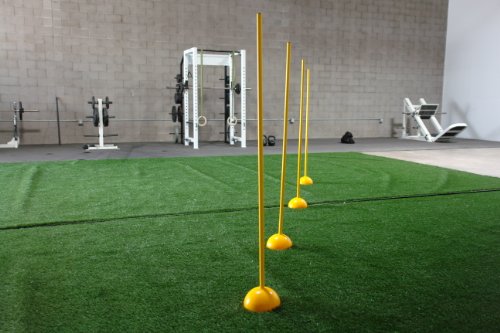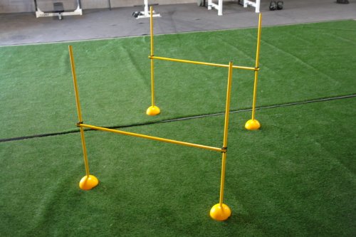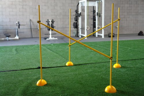 Studio : Workoutz Publisher : Workoutz Binding : Misc. Product Description SORRY, NO INTERNATIONAL SHIPPING. This is a very versatile set that allows you to weave in and out of the upright poles to mimic real-world sports movement patterns. The crossbar poles can also be used to duck under or jump over. The swiveling connector clips support multiple configurations, including diagonal pole formations. The possibilities are endless. The entire set is constructed of durable PVC plastic and can be used indoor or outdoor. Included are four dome bases that can be filled with sand or any weighted compound that will fit into the 1-inch hole. We found that for most applications, the bases do not have to be weighed down even in moderately windy conditions. In instances where the surface may be uneven such as grass, weighing the bases down helps keep the poles level. Set includes the following: 6 ea - Agility poles (60 inches tall), 4 ea - Dome bases, 4 ea - Swiveling connector clips 0