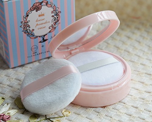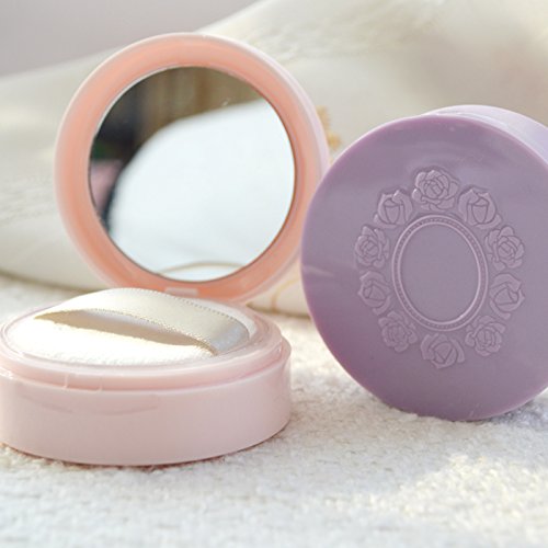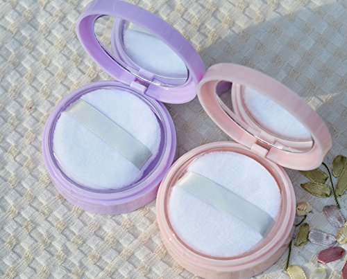 Portable Powder Puff Case Container DIY Make-up Face Powder Box Jar Travel Kit With Mirror and Sifter10 ml (Pink)