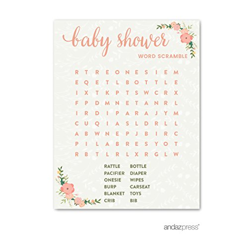 Andaz Press Floral Roses Girl Baby Shower Collection, Word Search Game Cards Activity, 20-Pack