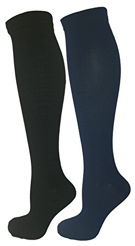 Black & Blue 2 Pair Large/X-Large Ladies Compression Socks, Moderate/Medium Compression 15-20 mmHg. Therapeutic, Occupational, Travel & Flight Knee-High Socks. Womens and Mens Hosiery