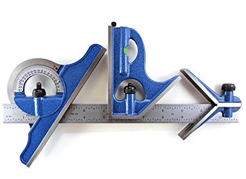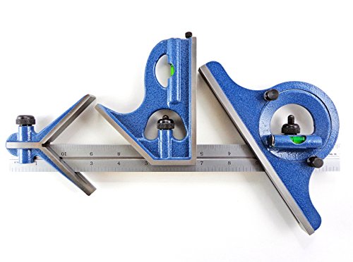 PEC 12" 4R 4 piece combination machinist square with reversing protractor marked with 1/32", 1/64", 1/8", 1/16"