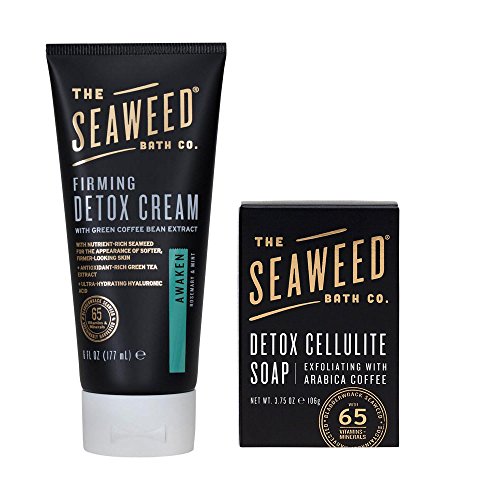 Seaweed Bath Co Age-defying Cellulite Reducing Detox Bar Soap & Moisturizing Cream Bundle with Bladderwrack Seaweed, Rejuvenating Arabica...