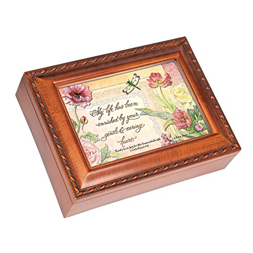 My Life Enriched By You Wood Finish Jewelry Music Box Plays Amazing Grace