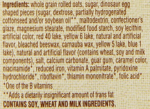 -. Feature : The delicious flavor of brown sugar, with kid-friendly dinosaur shapes / A fun, hot breakfast cereal or morning snack for kids / The eggs melt away to reveal sweet edible dinosaurs when hot water is added / Quaker Instant Oatmeal is made from 100% whole grain Quaker Oats / Good source of Vitamin D, Calcium and Iron