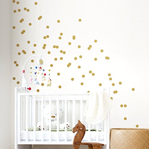 Gold Wall Decal Dots (208 Vinyl Decals)| 2" Removable Metallic Gold Vinyl Polka Dot Decor for Nursery + Kids Room | Easy to Peel Easy to Stick + Safe on Painted Walls