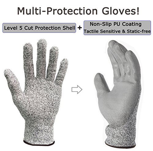 - LEVEL 5 CUT RESISTANT - The sturdy HDPE seamless knit shell with PU coating offers excellent cut protection to level 5. Perfectly protects you from cuts, snags and punctures--Protect Your Hands Today!