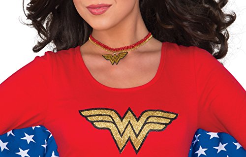 -. Binding : Apparel -. Brand : Rubie's -. Department : womens -. Feature : Officially licensed dc Comics wonder woman choker / Red and gold with character logo pendant / Note: costume sizes are different from clothing sizes; review the Rubie's size chart when selecting a size and consider buying the next size up if you are at the top of a size range / Part of the dc Comics costume separates line, look for all the pieces you need to create a look you'll love / Rubie's offers dc Comics costumes and accessories in sizes and styles for the entire family, makes group looks fun and easy -. Genre : Jewelry -. IsAdultProduct : 0 -. Label : Rubies Costumes - Apparel -. Manufacturer : Rubies Costumes - Apparel -. Model : 38036 -. PackageQuantity : 1 -. ProductGroup : Apparel -. ProductTypeName : ADULT_COSTUME -. Publisher : Rubies Costumes - Apparel -. Studio : Rubies Costumes - Apparel -. Title : Rubie's Women's DC Comics Wonder Woman Choker