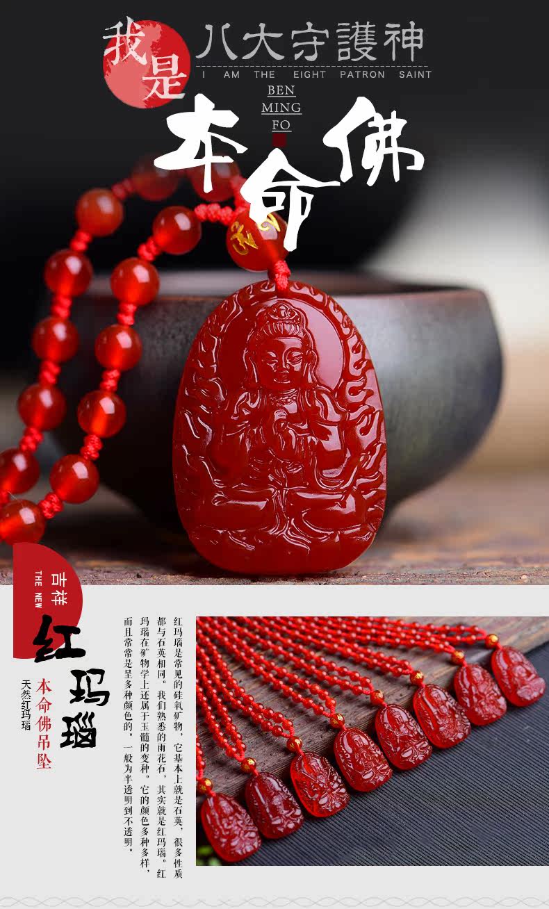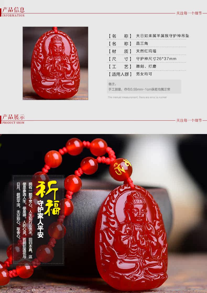 开光红玛瑙大日如来本命佛菩萨吊坠生肖羊猴男女项链本命年饰品
