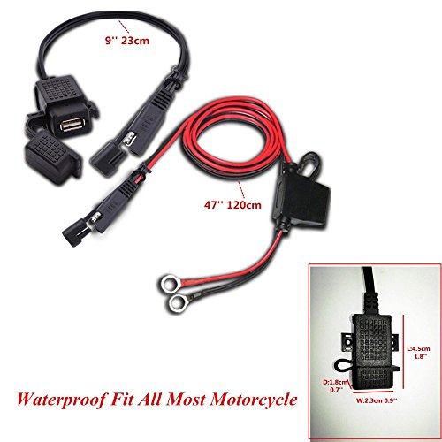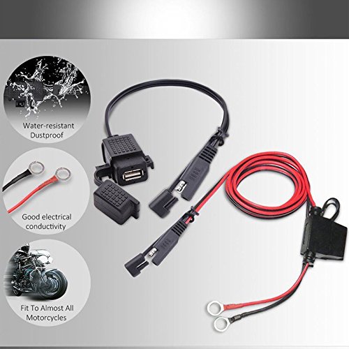 It can be directly powered by the existing SAE outlet of your motorcycle or get power from the battery by connecting to the ring-terminal extension cable