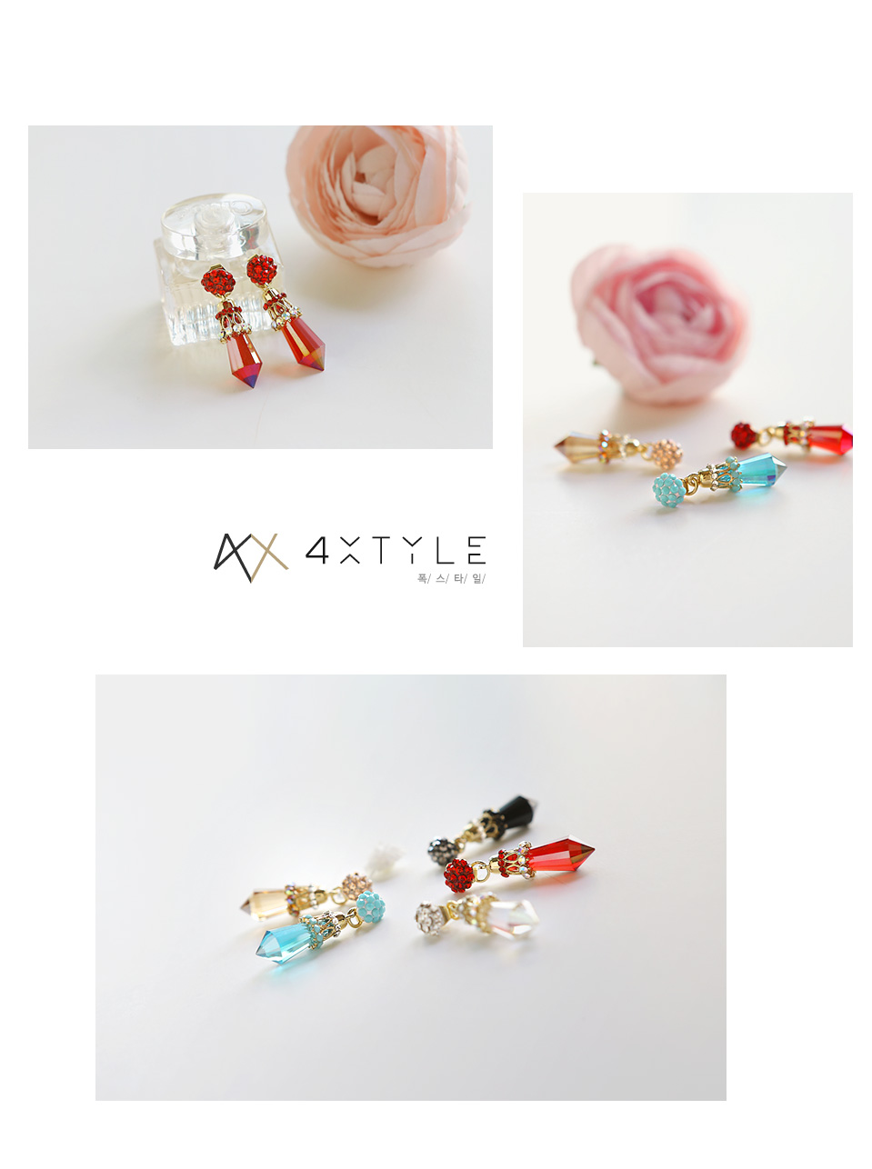 크리스탈과 큐빅의 믹스매치로 럭셔리한 느낌을 물씬 풍기는 이어링.