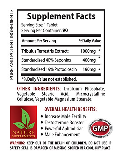 Studio : NATURE SUPPLEMENTS Publisher : NATURE SUPPLEMENTS Binding : Health and Beauty Product Description Natural male enchantment pills increase size and length - TRIBULUS TERRESTRIS EXTRACT (1000MG) - Tribulus terrestris 1000 mg - 2 Bottles 180 Tablets LIBIDO BOOSTER: Tribulus terrestris has been used in traditionally for supporting sex drive, libido and sexual performance in men. Mixtures of different compounds found in the fruits, stems and roots of Tribulus Terrestris provide its health properties. According to the EmedTV website, early research suggests that Tribulus Terrestris can be beneficial for increasing the levels of testosterone and DHEA. INCREASE MUSCLE MASS: Tribulus terrestris can be beneficial for increasing testosterone levels, which helps to increase muscle mass. According to several studies, reveal an increase in testosterone levels when Tribulus Terrestris is taken. The rise in testosterone level can be beneficial for reducing the time for the muscles to recover, and enhances protein synthesis. NATURAL TESTOSTERONE BOOSTER: Tribulus Terrestris continues to be looked into for its power to raise testosterone naturally. Research studies suggest that this herb can be beneficial for improving luteinizing from Tribulus Terrestris by up to 70%, thus increasing testosterone creation by around 45%. MOOD AND ENERGY BOOSTER: When taking Tribulus Terrestris, many users find that it actually can be helpful for boosting mood and energy as well as testosterone. It gives you the ability to power through workouts and recover faster from heavy weight lifting and cardio sessions. 0