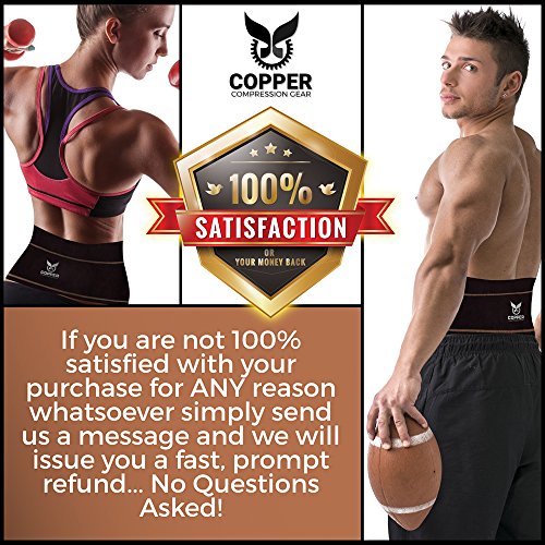 All Copper Compression Gear products come with a 100% SATISFACTION GUARANTEE - We are so confident that you will feel the difference so we want you to try it out completely risk free to see for yourself! Copper Compression Gear sleeves have the highest copper concentration available on the market. Compression helps stabilize muscle tissue, keeping the swelling of muscle fibers at a micro level. Compression also increases oxygen blood flow to the muscles to aid recovery while reducing swelling. Copper Compression Gear Back Support is comfortable enough to be worn all day while still providing great support and a nice compression to speed up recovery, and reduce soreness of your muscles, joints, and tendons. Click the "Add To Cart" button on this page to try your Copper Compression Gear Back Support completely RISK FREE because you are completely covered by our 100% MONEY BACK GUARANTEE. 0 |