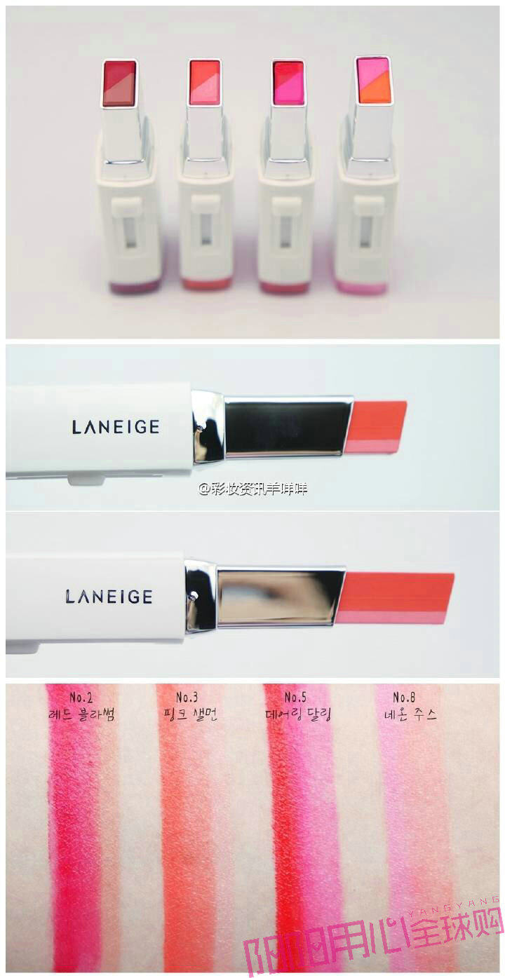 韩国代购 兰芝 超放电丝绒双色唇膏口红 斜角/渐变/咬唇 15年新款