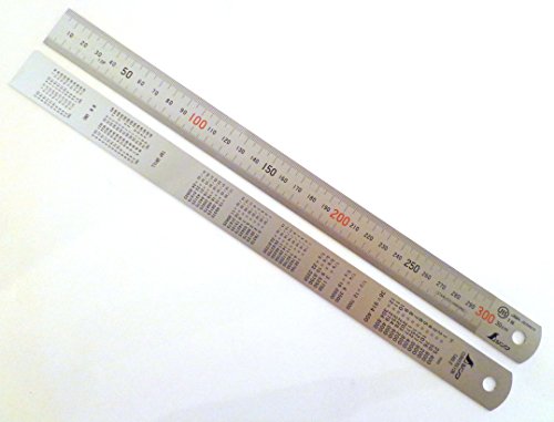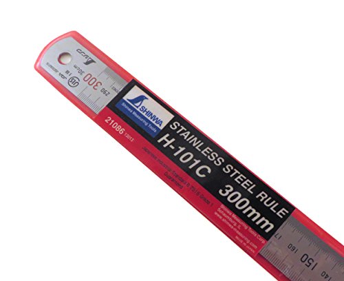 Shinwa 300 mm Rigid (25 mm x 1 mm) Zero Glare Satin Chrome Stainless Steel Machinist Engineer Ruler / Rule with Graduations in mm and .5mm Model 13013