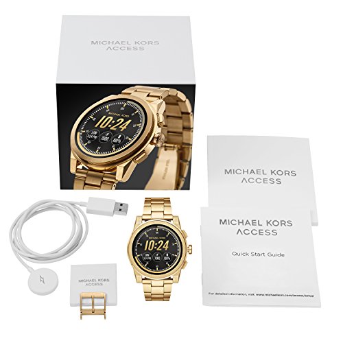 -. Binding : Jewelry -. Brand : Michael Kors -. Department : mens -. Feature : Goldtone stainless steel / Powered by Android Wear / Compatible with iOS and Android / 47mm Case size / Provides social media, email, text, and app notifications -. Label : Michael Kors -. Manufacturer : Michael Kors -. ProductGroup : Jewelry -. ProductTypeName : FINEOTHER -. Publisher : Michael Kors -. Studio : Michael Kors -. Title : Michael Kors Men's Goldtone Grayson Smartwatch