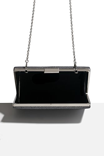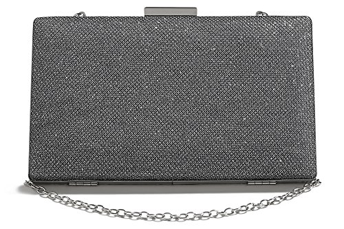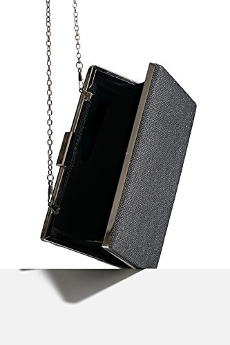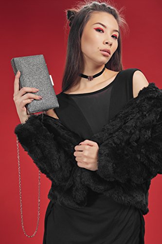 Sparkly clutch bag with a rectangular top clasp, a removable chain strap and a fully lined velvety interior. Perfect addition to your evening, formal, prom or cocktail outfit.