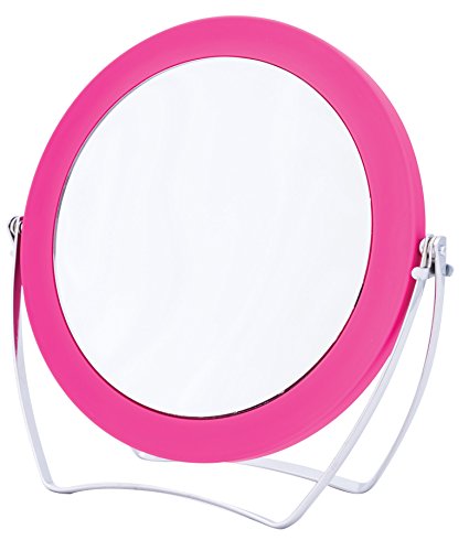 Danielle Creations Soft Touch Pink Easel Vanity Mirror, 5X Magnification