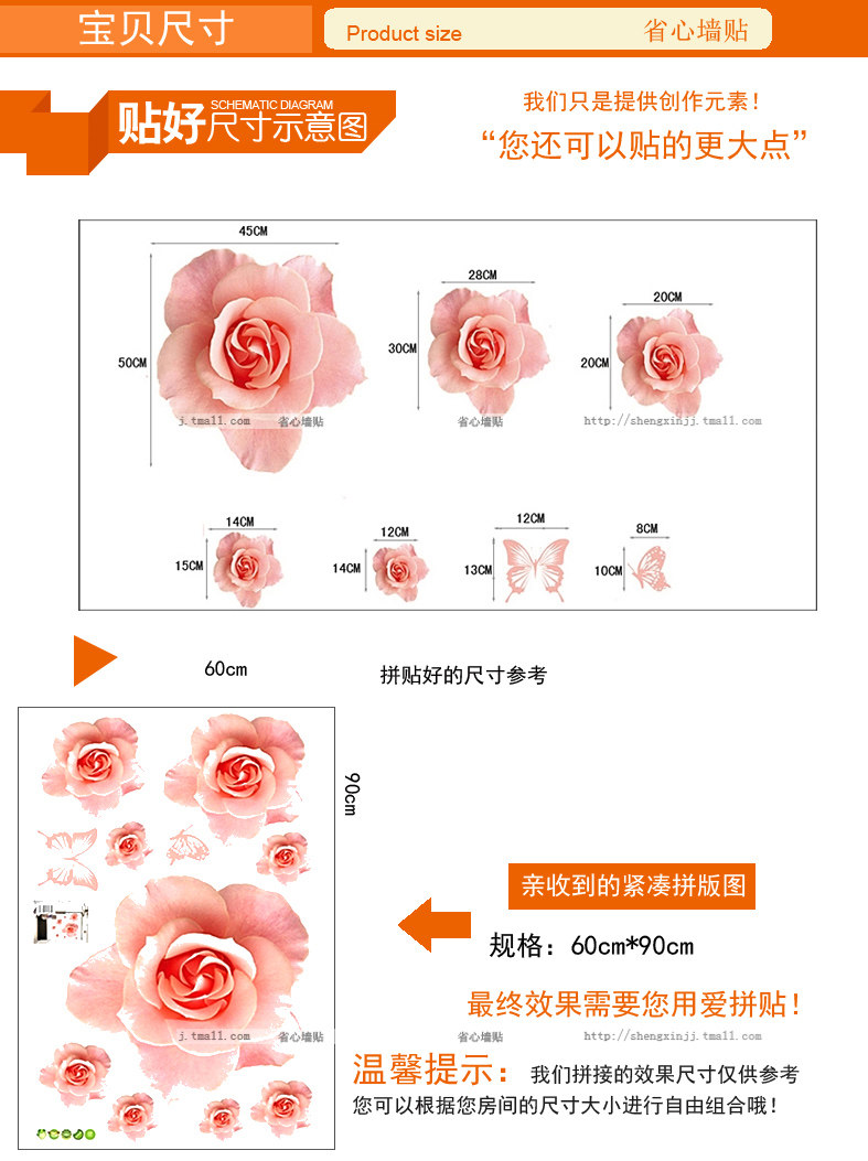 Brand: peace of mind Style: simple and modern Pattern: Plant flowers Wall Stickers Type: waterproof wall stickers Material: environmental protection PVC, comes with adhesive, without transfer film, can be pasted directly. Pricing Unit: set Wall Sticker Style: Plane Wall Stickers size: detailed dimensions refer to the effect of Image (unit: cm) Sizes, "you receive a compact imposition map" size and "collage after size reference" two We are for reference only, based on the size of your room you can freely combine