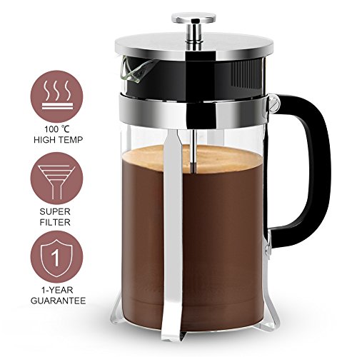 -. Title : French Press、ymikoフランス語コーヒー押し( 8カップ、1 Liter , 34 oz ) French Press Coffee Maker with 4フィルタシステム、304グレードステンレススチール& Heat Resistantホウケイ酸ガラス、簡単クリーニング