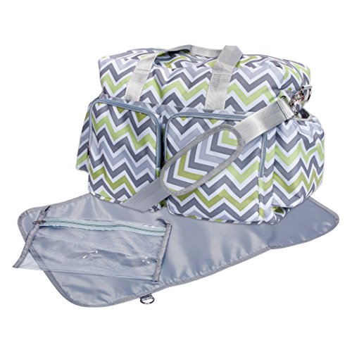 -. Title : Trend Lab Green, Gray, and White Chevron Deluxe Duffle Diaper Bag