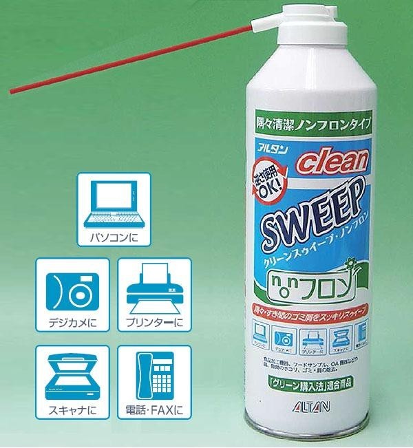 【使用方法】 (1)噴射ボタンの安全キャップをはずします。 (2)空噴きして液体が出ないことを確認してください。 (3)ノズルの先をゴミ、屑の10~20cmに近づけボタンを押し噴射します。 (4)使用後、噴射ボタンにキャップをかぶせます。※隙間や狭い部分に噴射する場合は、添付のチューブをノズルにしっかりはめ込み使用します。
