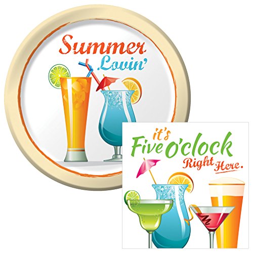 - Plates say: "Summer Lovin'" & Napkins say: "It's five o'clock right here" with mixed drinks