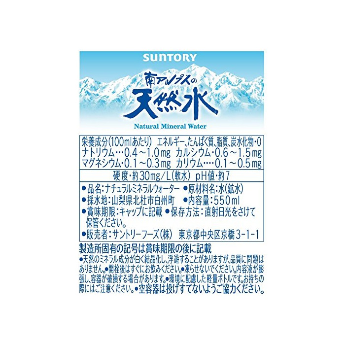 원본상품명: サントリ 天然水 南アルプス 550ml×24本 ナチュラルミネラルウォタ