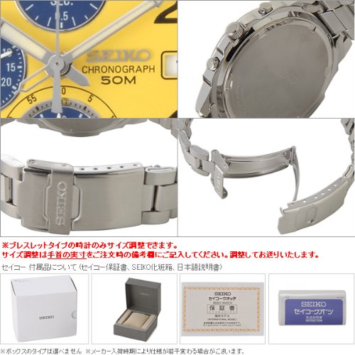 소재S스틸,크리스탈 유리크기페이스(HxWxD):약39x39x11mm(시계의 태엽을 감는 꼭지 제외한다) 무게:약110g 팔 주위:약최대200cm사양■제품번호 SND409 ■무브먼트 쿼츠 ■방수 일상생활 방수 ■컬러 문자판:옐로우■기능 크로노그래프,캘린더(날짜 요일) ■부속품 세이코 보증서,세이코 취급 설명서,SEIKO화장품 상자,폐사1년 보증서 저가격에 고기능 재능이 인기의 세이코의 크로노그래프입니다디자인도 싫증나는 일 없이,시원합니다.해외 모델:SEIKO사가 세계에서 판매 하고 있는 국제적 모델.해외에서 높은 평가를 얻어 있는 인기 모델을 역수입.통상은 일본어의 카피 설명서이지만,이쪽의 상품은 국내 일본어 설명서와 일본 국내에서의서포트가 받 # 세이코의 보증서 첨부입니다