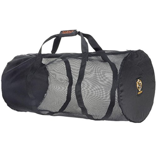 -. Feature : 11/2" wide handle wraps around the bag, providing extra security for your valuable contents / The mesh material quickly drains water when the Duffel is filled with wet equipment / Durable YKK brass zippers / Easy draining mesh / Fastened with a Velcro closure and reinforced with box-stitching