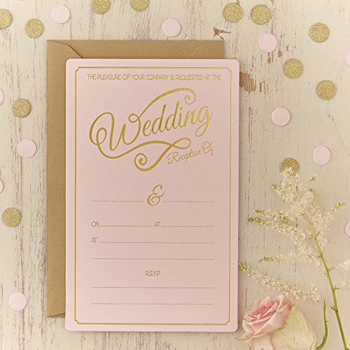 Ginger Ray Evening Wedding Reception Pastel & Gold Foiled Invitations (10 Pack), Pink