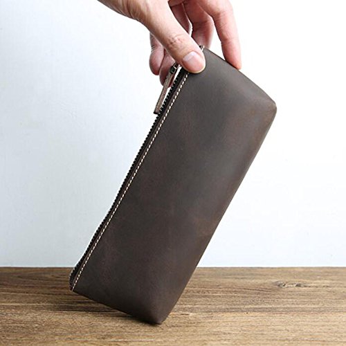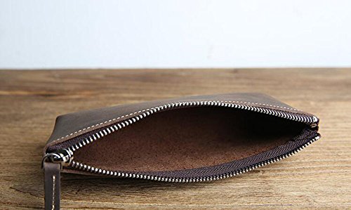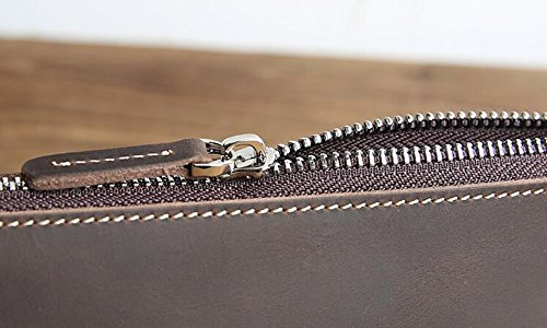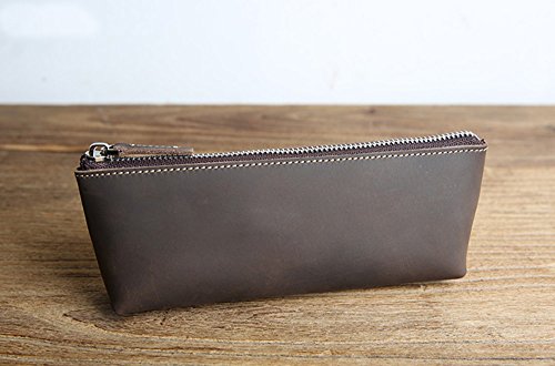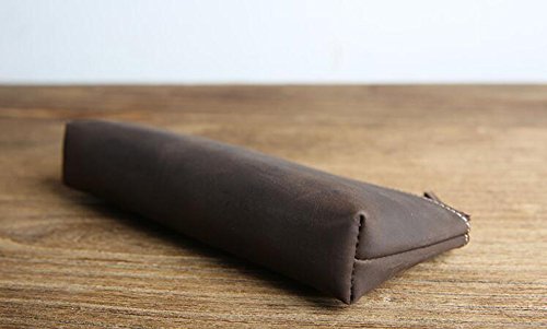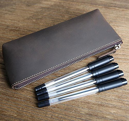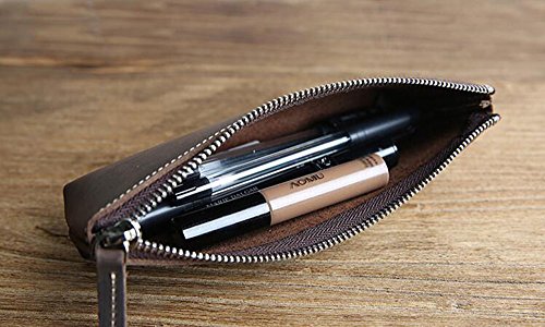 ZoCr Leather Zippered Pen Pencil Case Holder Pouch For School Office Business Work(Dark Brown)