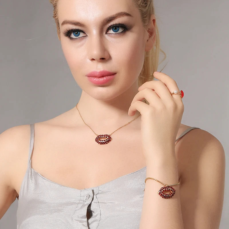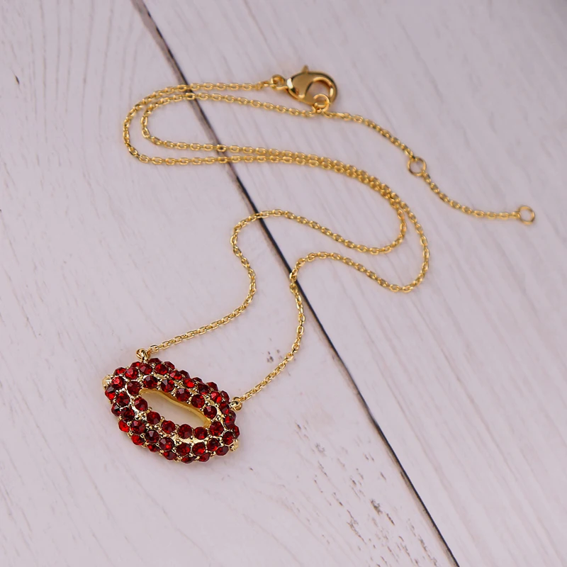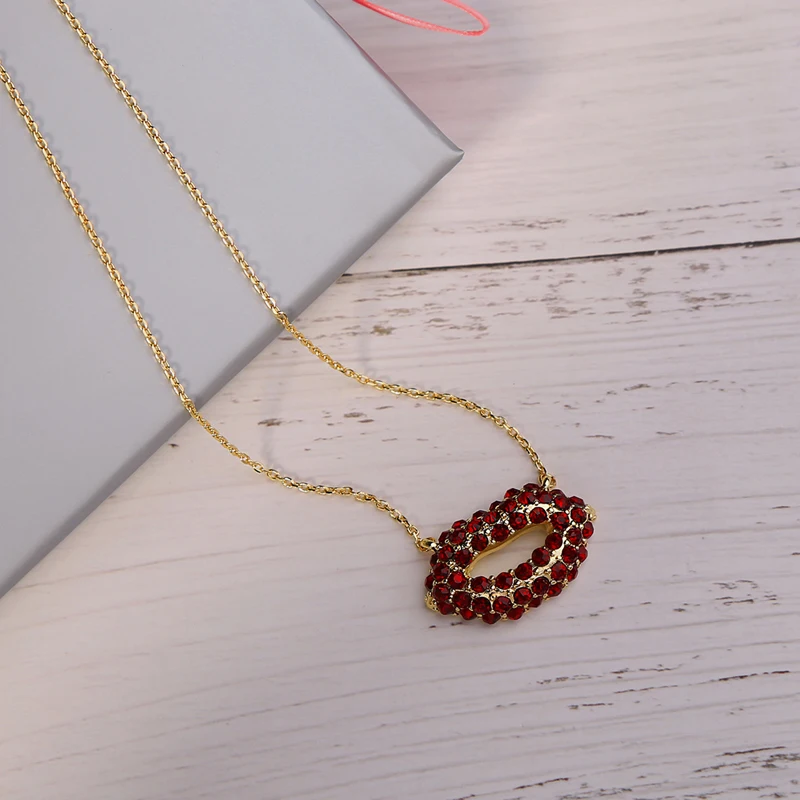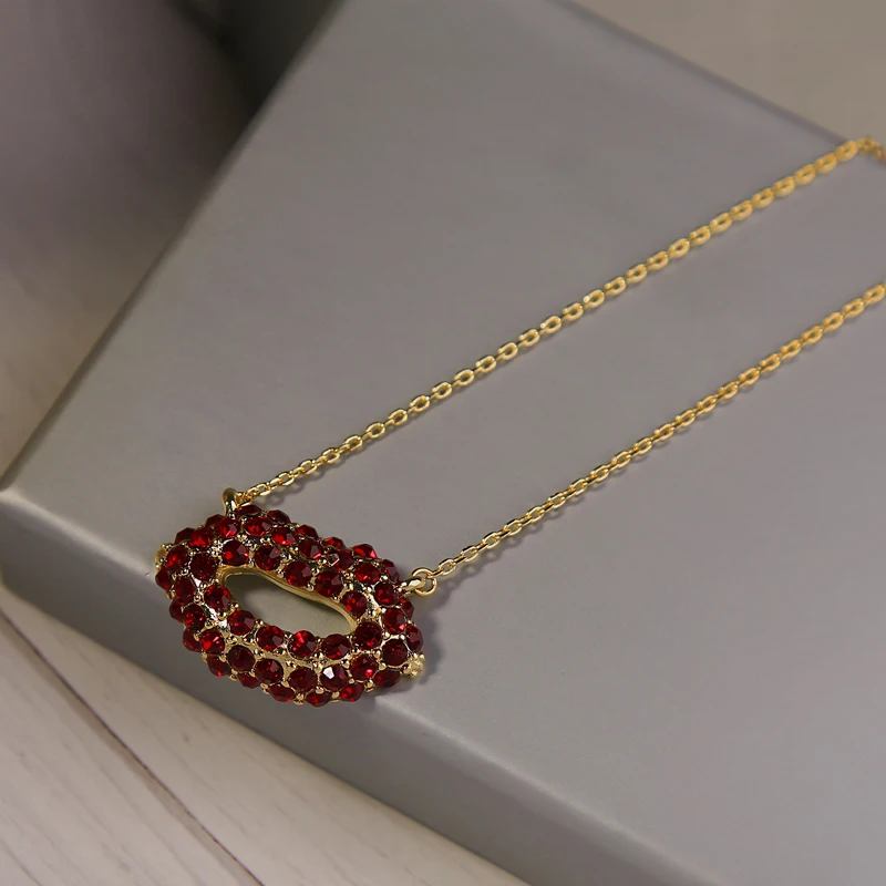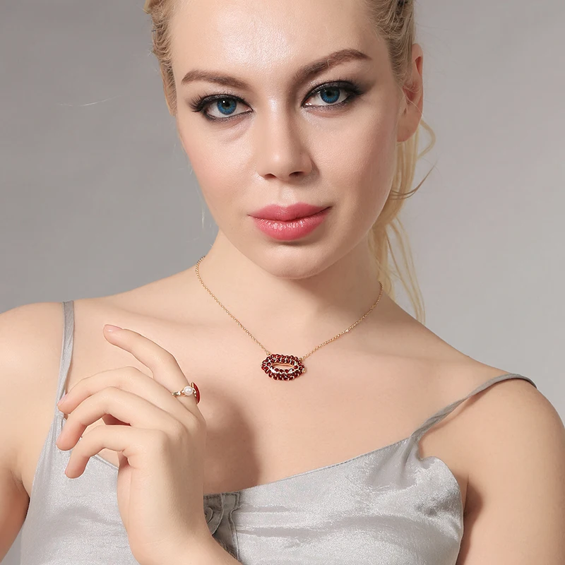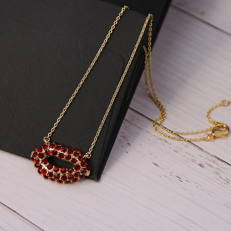 Keywords:Red Crystal Mouth Lip Gold Color Thin Chain Choker Neclaces