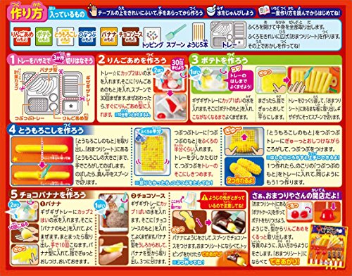 -. Feature : It is handmade candy that makes sweets of menu that is exactly like the real festival. / Let's make menu with summer fun time, fun with handmade fun with children and parents! / Content: 6 bags of powder with different ingredients, Apple Candy, Potato, Corn, Chocolate, banana, / Popin' Cookin' is a series of Kracie DIY candy. You can easily make yourself by adding water to the ingredients of the package. / Size of the box: width: 5.7", height: 5.2", depth: 1.7"