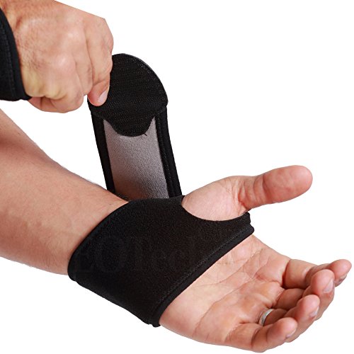 NEOtech Care (TM) Neoprene Wrist Brace, Support, Band - Light, Elastic & Breathable - Muscle Relief - Adjustable Compression - Black Color - Size M - Package...