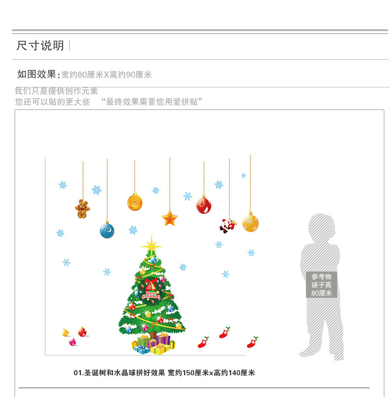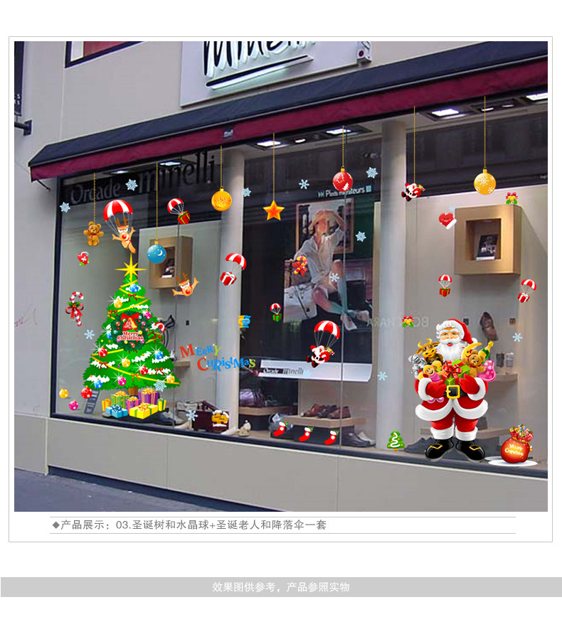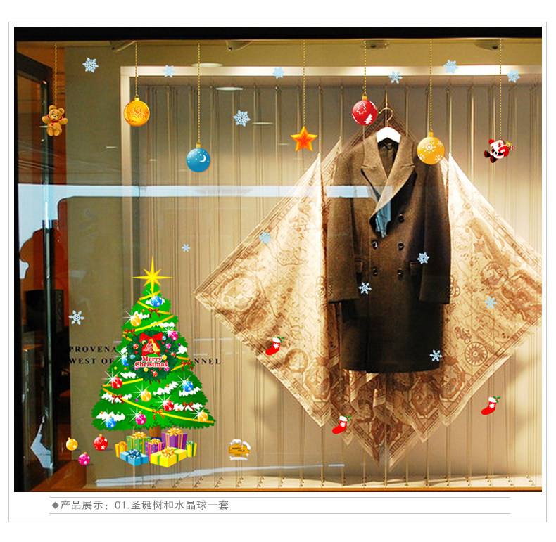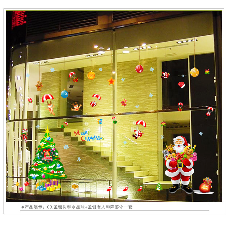 圣诞节墙贴纸店铺玻璃橱窗贴画装饰品装扮圣诞树礼物圣诞老人挂球