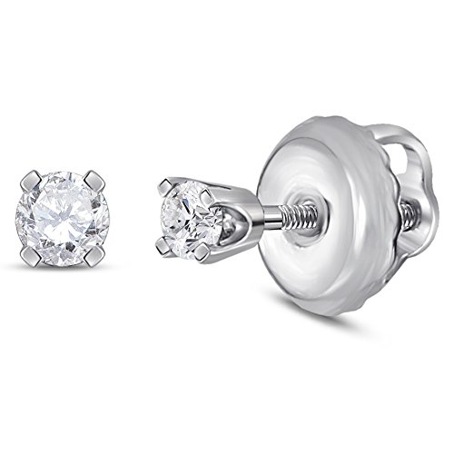-. Title : 14k White Gold Round Natural Diamond Girls Baby Solitaire Small Screwback Fine Earrings (.05 cttw.) (I2-I3)