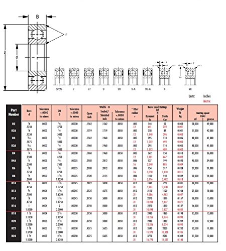 Peer Bearing 7R4 R-Series Radial Bearing, Single Shield, 1/4" ID, 5/8" OD, 0.1960" Width